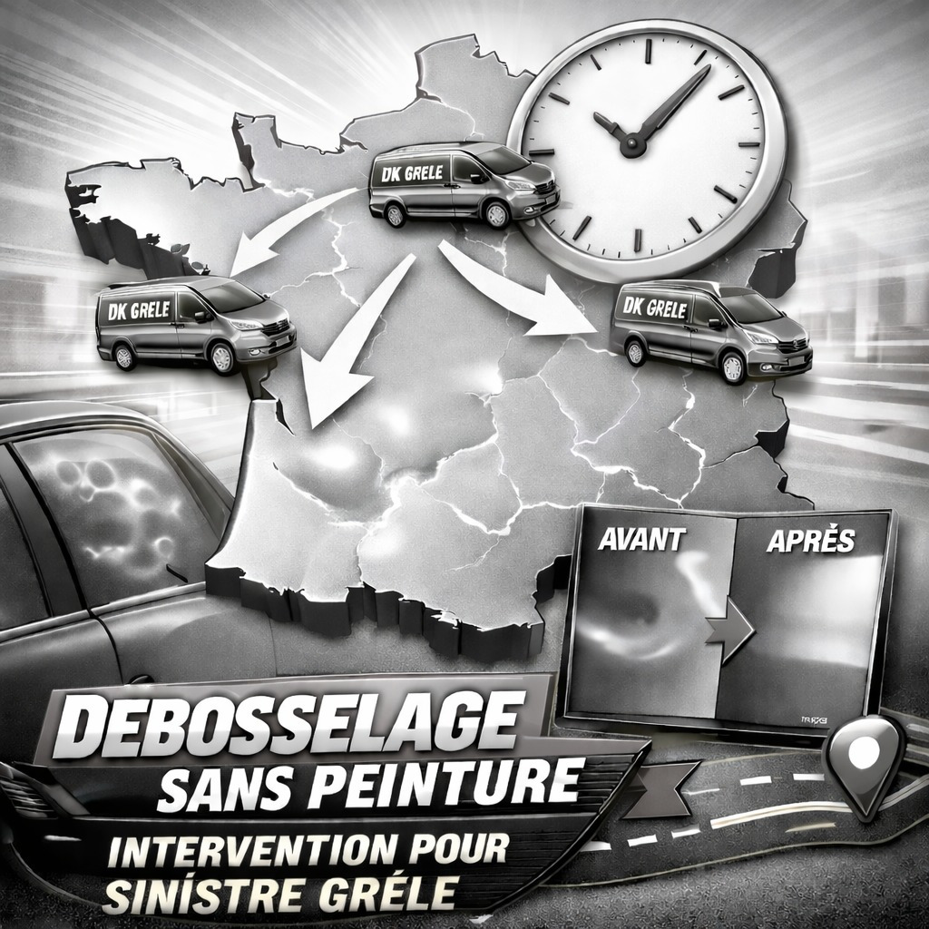 Créée en 2013, la société DK GRELE regroupe aujourd’hui les compétences d’acteurs du débosselage sans peinture et de la carrosserie automobile de prés de 20 ans d’expérience. Fort de son expérience DK GRELE est devenue experte en gestion de sinistre grêle. Reconnue par les cabinets d’expertise automobile et de nombreux carrossiers partenaires grâce à une gestion efficace, un travail de qualité et une rapidité d’exécution sur tout le territoire français. Au niveau mondial, les techniciens du réseau DK GRELE sont intervenus sur des parcs automobiles haut de gamme.